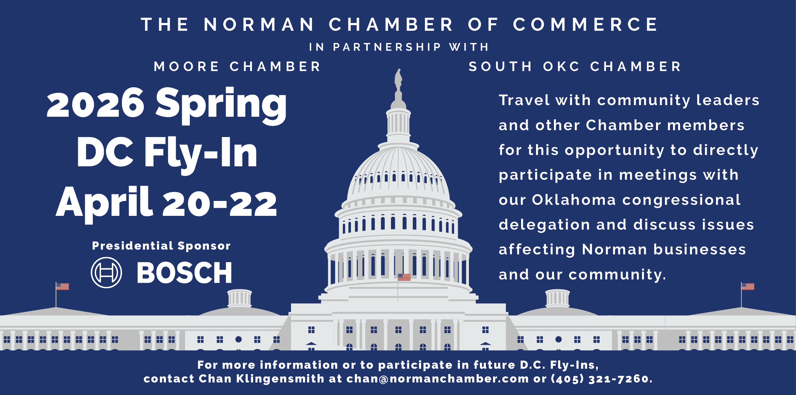 For more information, please contact Chan Klingensmith at chan@normanchamber.com or (405) 321-7260.