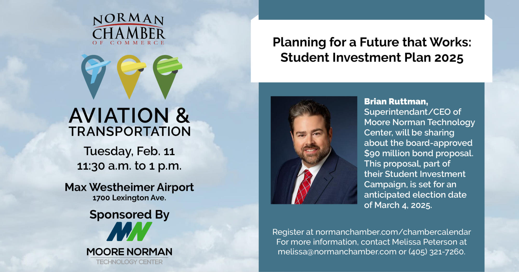 Brian Ruttman, Superintendant/CEO of Moore Norman Technology Center, will be sharing about the board-approved $90 million bond proposal. This proposal, part of their Student Investment Campaign, is set for an anticipated election date of March 4, 2025.