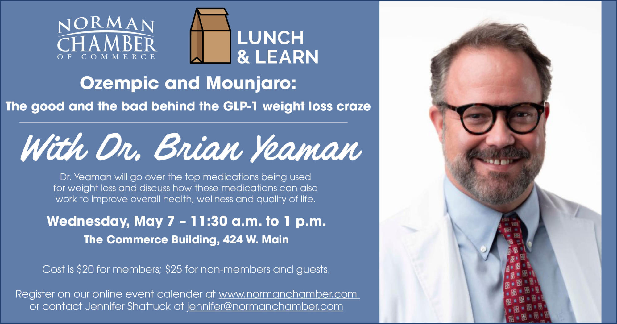 The presentation will include a brief discussion on how the body balances weight, how these medications work and are being prescribed, as well as the effectiveness and drawbacks to the medications. Yeaman will also cover the ramifications for longevity and quality of life when used appropriately.