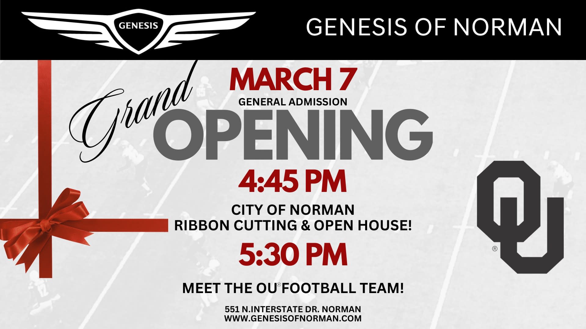 Join Norman Genesis of Norman for their grand opening located at 551 N Interstate Dr. Norman OK 73069 on March 7th at 4:45 pm for their ribbon cutting.