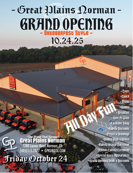 Join us and Great Plains Kubota on the southside of Norman for a ribbon cutting Oktoberfest-style! Ribbon will be at 11 a.m. with games, food and festivities all day.