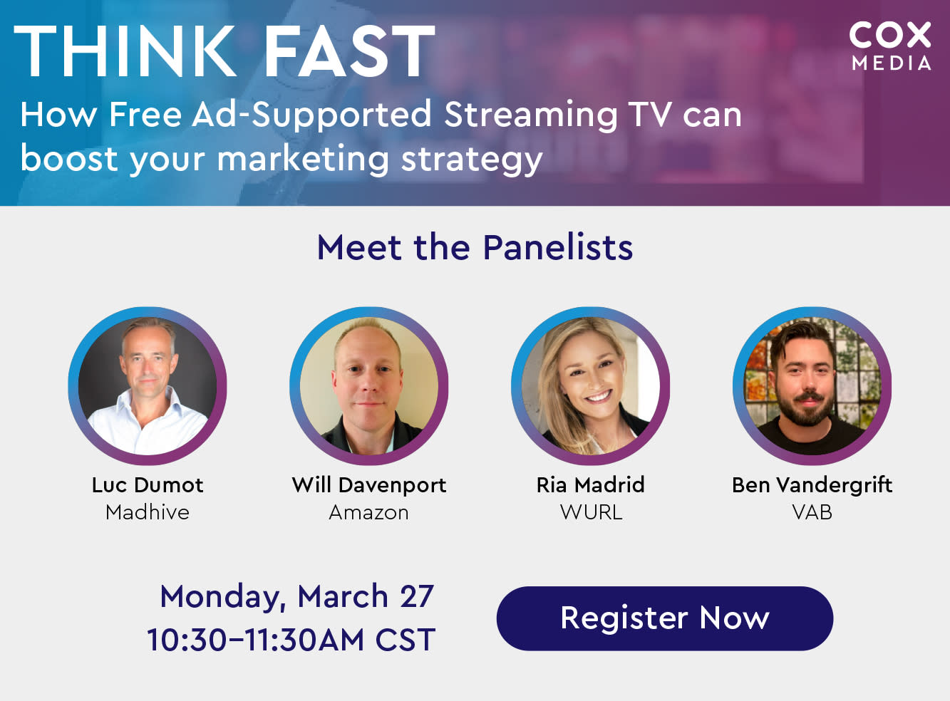 Cox Media is hosting some digital experts in an upcoming webinar about Free Ad-Supported Streaming Television (FAST). This FREE event will include a panel discussion about FAST, how it fits in the streaming landscape and how to best incorporate it into your advertising strategy.